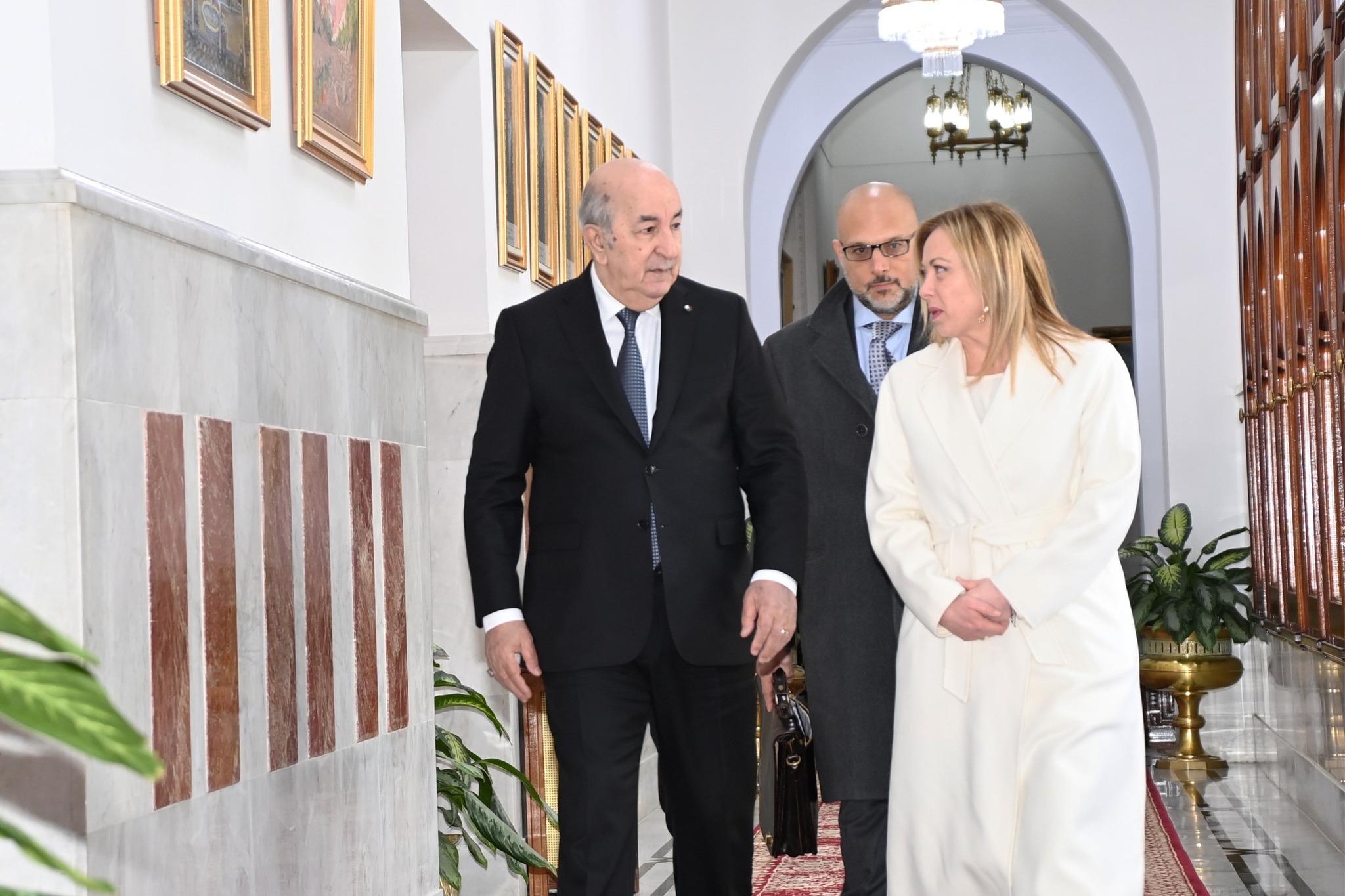 أجرى رئيس الجمهورية، عبد المجيد تبون، اليوم الأربعاء، محادثات على انفراد مع رئيسة مجلس الوزراء الإيطالي، جورجيا ميلوني، التي تقوم بزيارة عمل وصداقة إلى الجزائر.